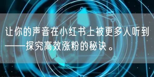 --小红书作为一个社交分享平台,拥有庞大的用户群体和高度活跃的用户参与度。在这个平台上,每个人都有机会让自己的声音被更多人听到。那么,如何在小红书上高效涨粉,让